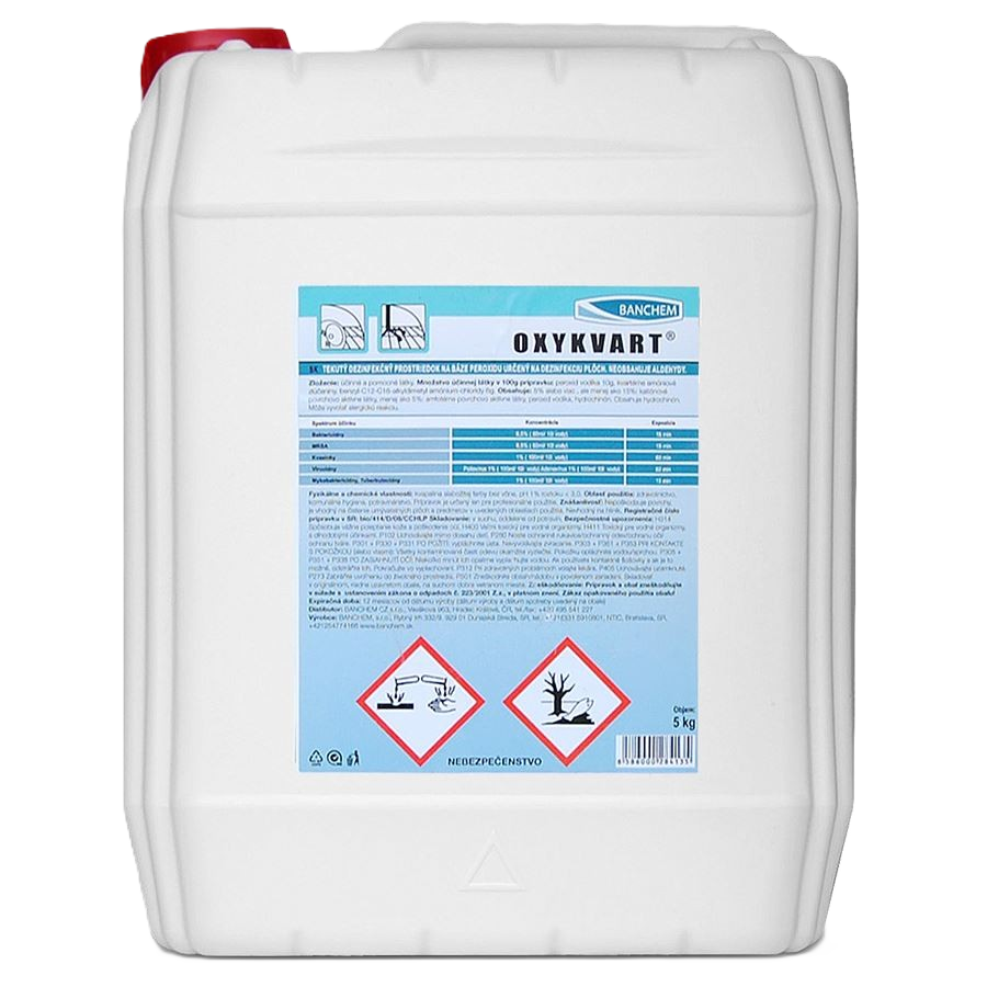 Kvapalný dezinfekčný prostriedok na plochy a predmety s obsahom peroxidu vodíka.